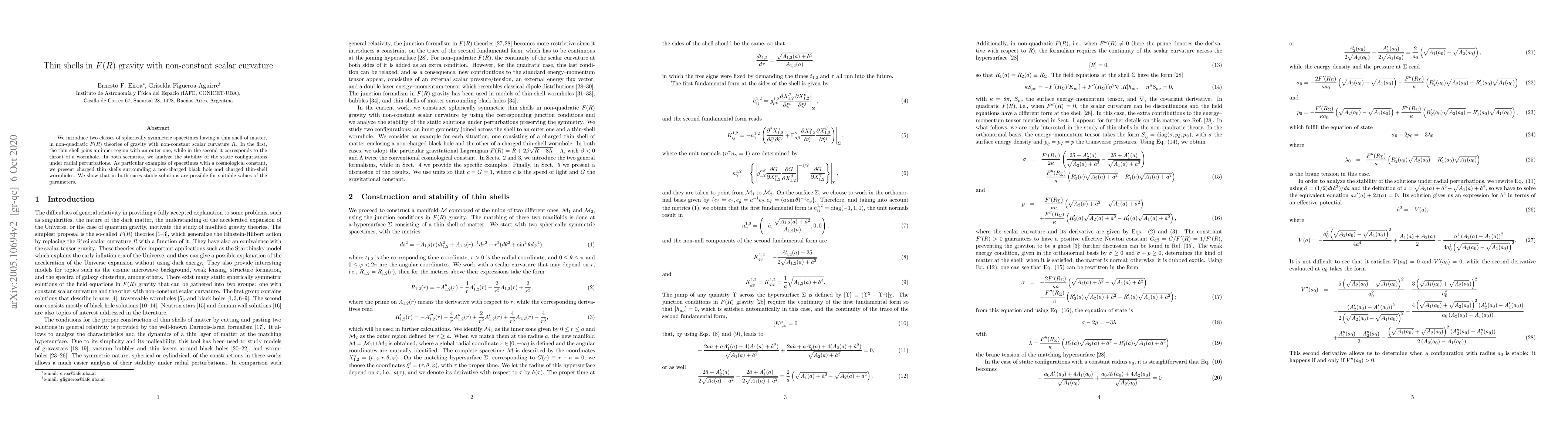 This paper explores spherically symmetric thin shells in non-quadratic F(R) gravity with non-constant scalar curvature, analyzing their stability under perturbations. It examines both shell-connected regions and wormhole throats, finding stable configurations for specific parameter values, including charged shells around non-charged black holes and charged thin-shell wormholes.