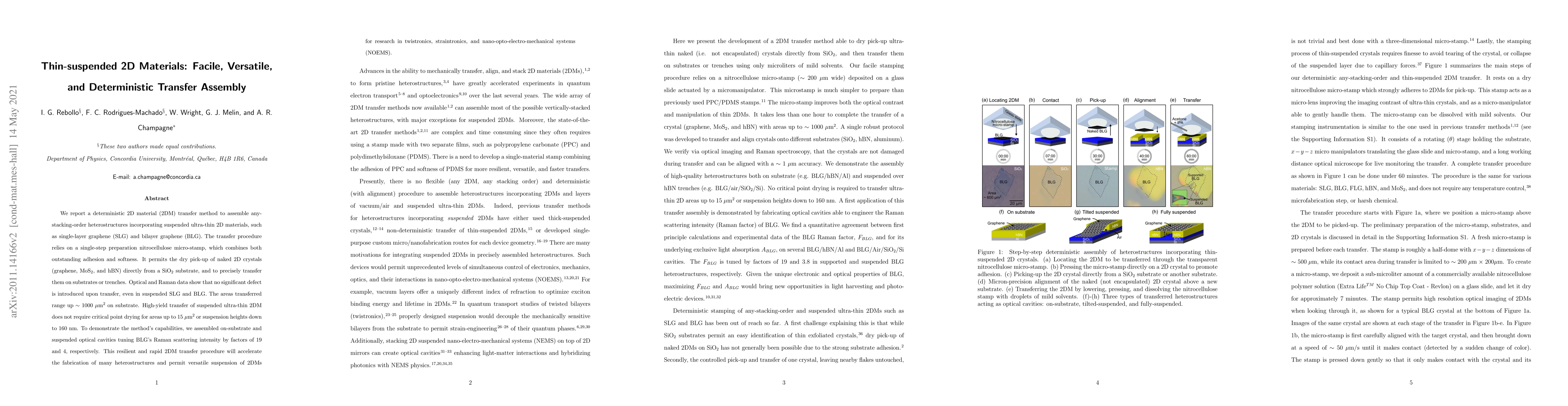 This paper presents a deterministic method for transferring thin-suspended 2D materials like graphene and MoS$_2$ onto various substrates using a nitrocellulose micro-stamp, ensuring minimal defects and high-yield assembly. The technique enables the versatile suspension of 2D materials for advanced research applications.