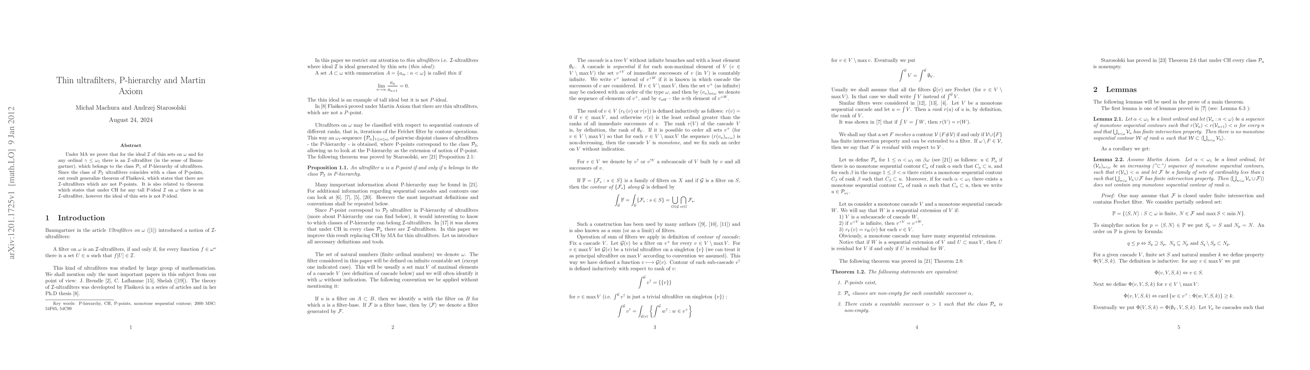 Under MA we prove that for the ideal $\cal I$ of thin sets on $\omega$ and for any ordinal $\gamma \leq \omega_1$ there is an ${\cal I}$-ultrafilter (in the sense of Baumgartner), which belongs to the class ${\cal P}_{\gamma}$ of P-hierarchy of ultrafilters. Since the class of ${\cal P}_2$ ultrafilters coincides with a class of P-points, out result generalize theorem of Fla\v{s}kov\'a, which states that there are ${\cal I}$-ultrafilters which are not P-points. It is also related to theorem which states that under CH for any tall P-ideal $\cal I$ on $\omega$ there is an ${\cal I}$-ultrafilter, however the ideal of thin sets is not P-ideal.