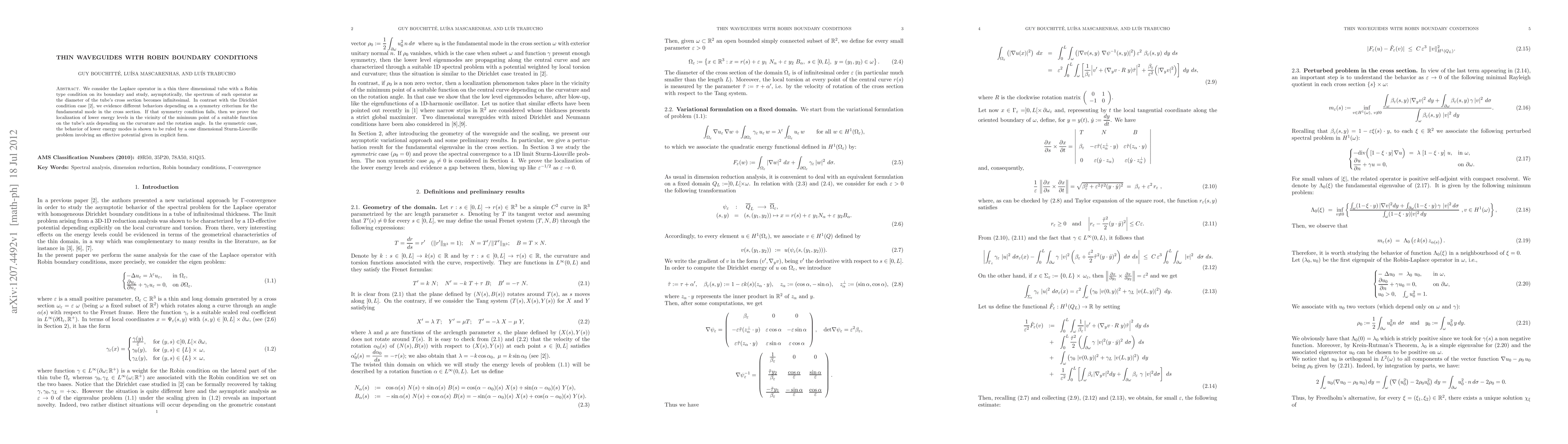 We consider the Laplace operator in a thin three dimensional tube with a Robin type condition on its boundary and study, asymptotically, the spectrum of such operator as the diameter of the tube's cross section becomes infinitesimal. In contrast with the Dirichlet condition case, we evidence different behaviors depending on a symmetry criterium for the fundamental mode in the cross section. If that symmetry condition fails, then we prove the localization of lower energy levels in the vicinity of the minimum point of a suitable function on the tube's axis depending on the curvature and the rotation angle. In the symmetric case, the behavior of lower energy modes is shown to be ruled by a one dimensional Sturm-Liouville problem involving an effective potential given in explicit form.