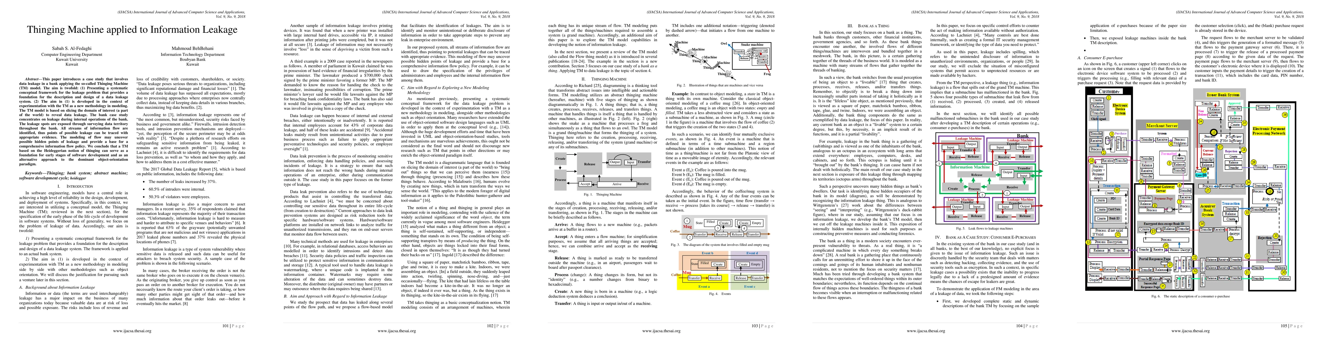 This paper explores the application of the Thinging Machine (TM) model to identify data leakage in a bank, presenting a conceptual framework for modeling information flow and potential leakage points. The TM approach, based on Heideggerian "thinging," offers an alternative to object-oriented methodologies in software development.