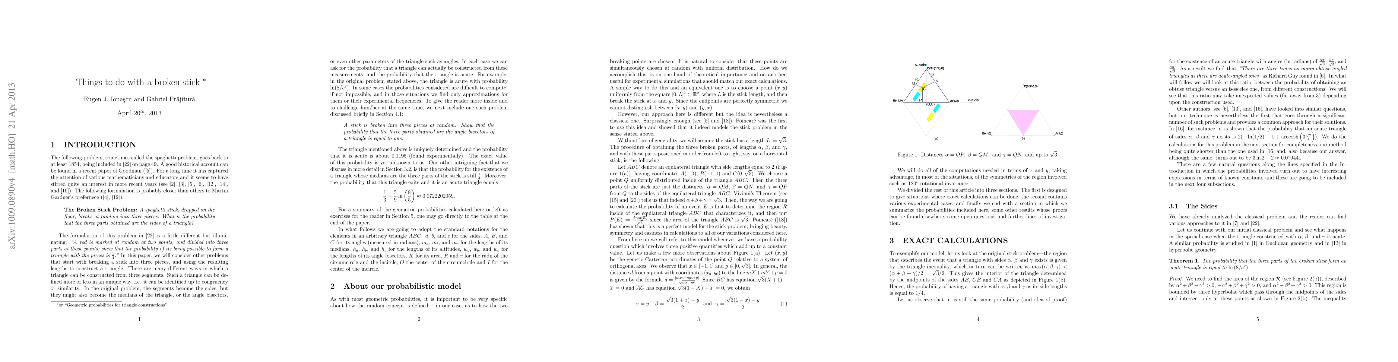 Researchers calculated probabilities of triangle configurations defined by broken stick elements, comparing acute to obtuse triangles.