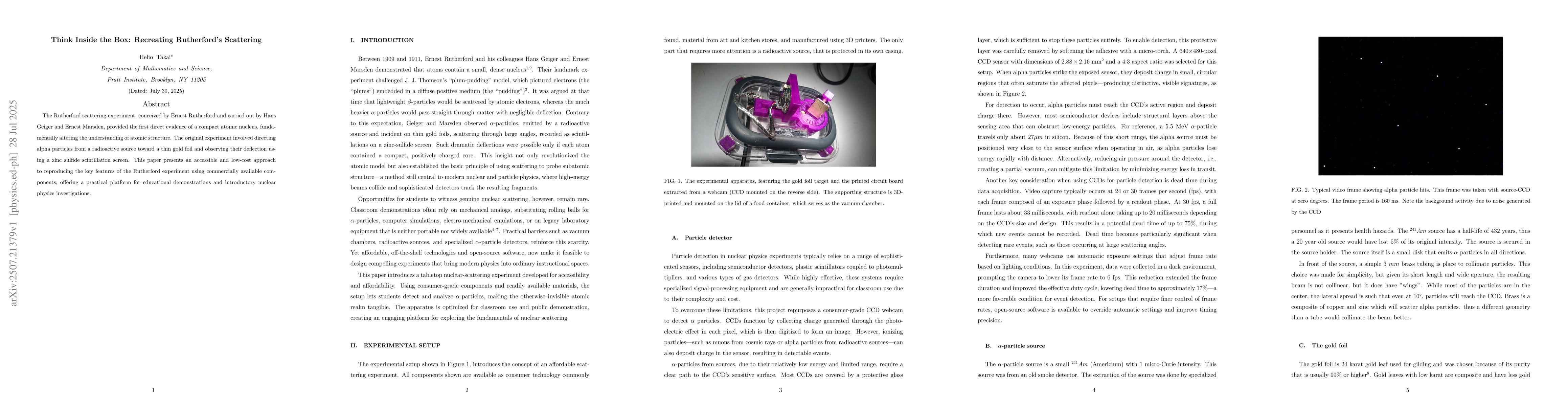 The Rutherford scattering experiment, conceived by Ernest Rutherford and carried out by Hans Geiger and Ernest Marsden, provided the first direct evidence of a compact atomic nucleus, fundamentally altering the understanding of atomic structure. The original experiment involved directing alpha particles from a radioactive source toward a thin gold foil and observing their deflection using a zinc sulfide scintillation screen. This paper presents an accessible and low-cost approach to reproducing the key features of the Rutherford experiment using commercially available components, offering a practical platform for educational demonstrations and introductory nuclear physics investigations.