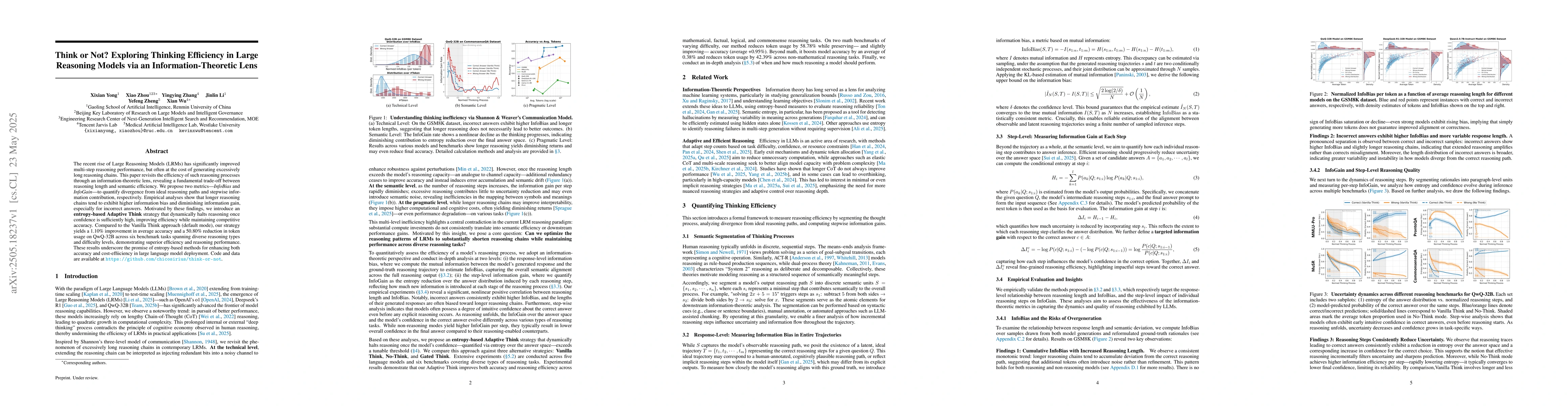 The paper presents InfoBias and InfoGain metrics for evaluating reasoning efficiency and introduces an entropy-based Adaptive Think strategy to optimize reasoning processes in LRMs.