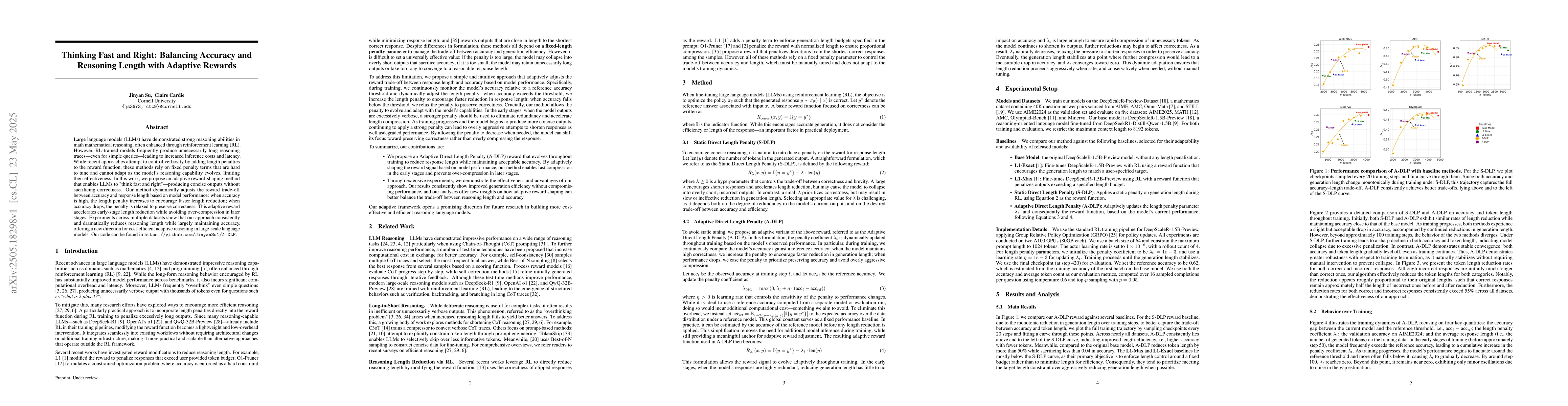 Researchers developed an adaptive reward-shaping method to balance accuracy and response length in large language models, achieving significant reductions in reasoning length while maintaining accuracy.