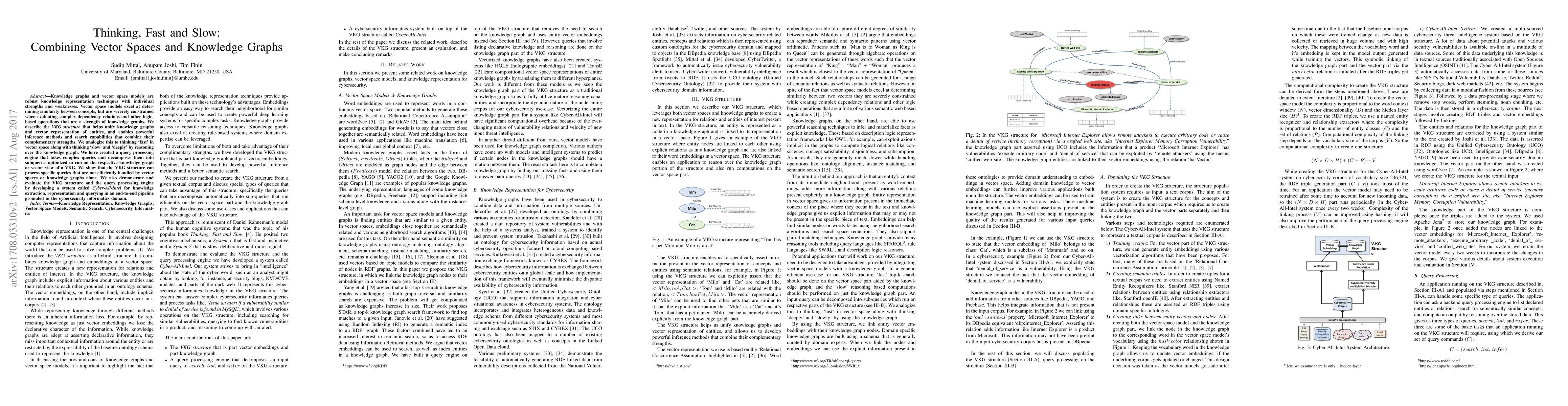 Knowledge graphs and vector space models are robust knowledge representation techniques with individual strengths and weaknesses. Vector space models excel at determining similarity between concepts, but are severely constrained when evaluating complex dependency relations and other logic-based operations that are a strength of knowledge graphs. We describe the VKG structure that helps unify knowledge graphs and vector representation of entities, and enables powerful inference methods and search capabilities that combine their complementary strengths. We analogize this to thinking `fast' in vector space along with thinking 'slow' and `deeply' by reasoning over the knowledge graph. We have created a query processing engine that takes complex queries and decomposes them into subqueries optimized to run on the respective knowledge graph or vector view of a VKG. We show that the VKG structure can process specific queries that are not efficiently handled by vector spaces or knowledge graphs alone. We also demonstrate and evaluate the VKG structure and the query processing engine by developing a system called Cyber-All-Intel for knowledge extraction, representation and querying in an end-to-end pipeline grounded in the cybersecurity informatics domain.