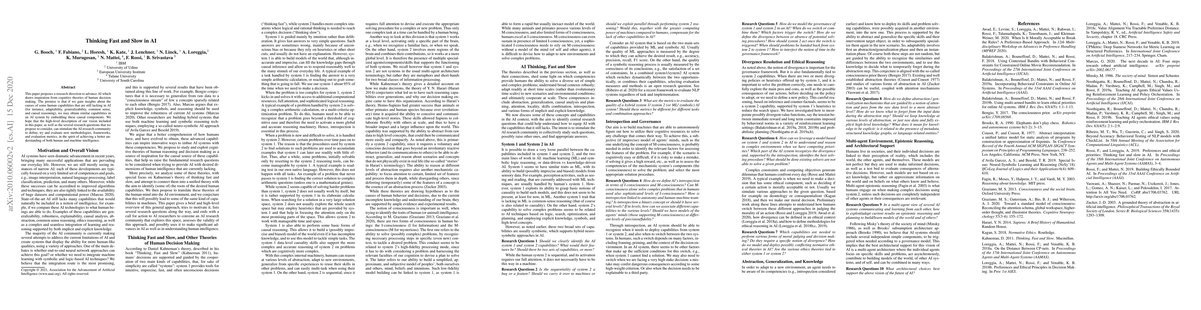 The paper proposes a research direction for AI inspired by cognitive theories of human decision-making, focusing on embedding causal components to achieve human-like capabilities such as adaptability, generalizability, common sense, and causal reasoning.