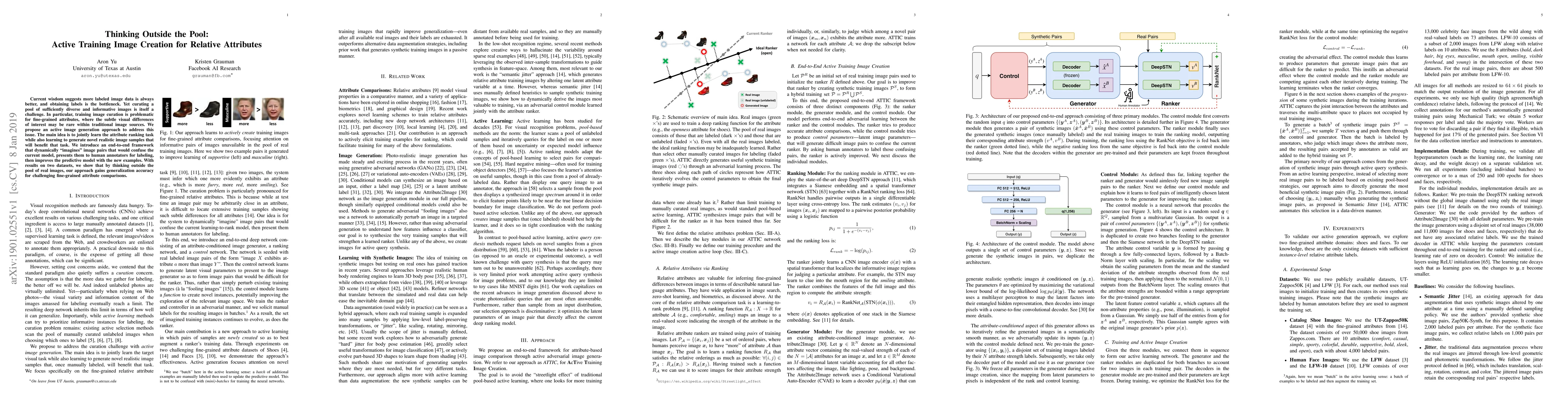 Current wisdom suggests more labeled image data is always better, and obtaining labels is the bottleneck. Yet curating a pool of sufficiently diverse and informative images is itself a challenge. In particular, training image curation is problematic for fine-grained attributes, where the subtle visual differences of interest may be rare within traditional image sources. We propose an active image generation approach to address this issue. The main idea is to jointly learn the attribute ranking task while also learning to generate novel realistic image samples that will benefit that task. We introduce an end-to-end framework that dynamically "imagines" image pairs that would confuse the current model, presents them to human annotators for labeling, then improves the predictive model with the new examples. With results on two datasets, we show that by thinking outside the pool of real images, our approach gains generalization accuracy for challenging fine-grained attribute comparisons.