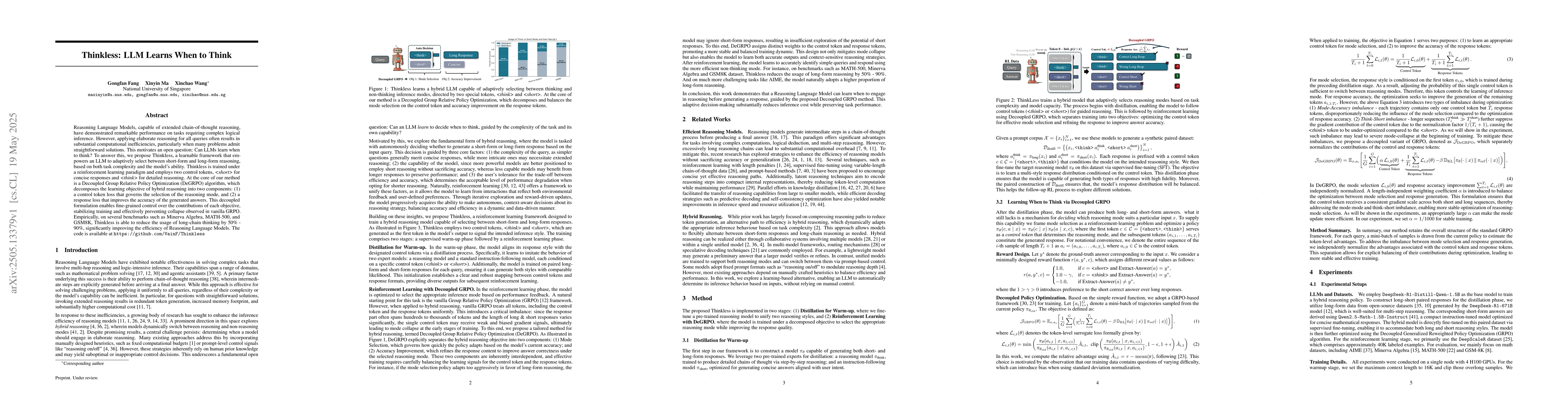 learn when to think? To answer this, we propose Thinkless, a learnable