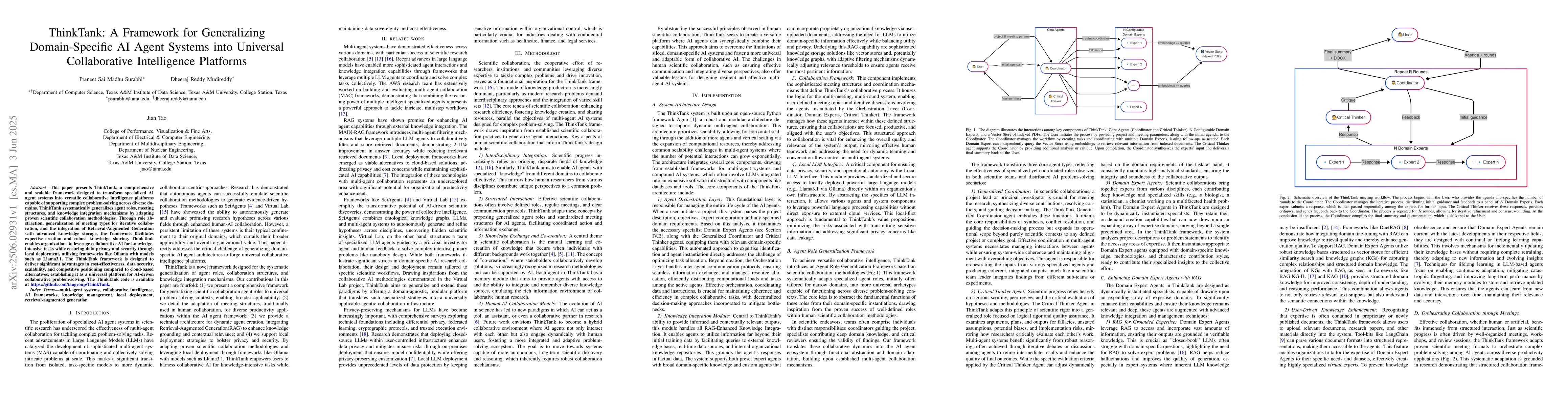 The development of ThinkTank, a novel framework for transforming domain-specific AI agent systems into versatile collaborative intelligence platforms.