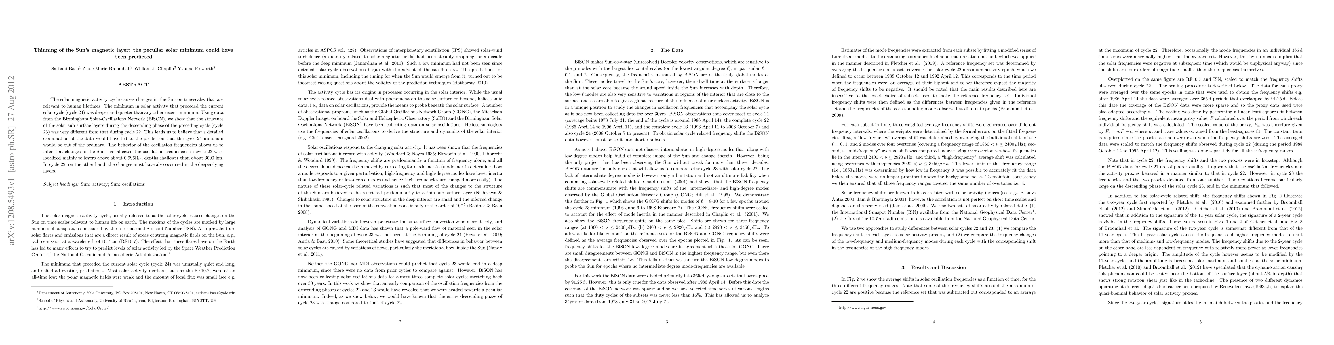 Researchers found that changes in the Sun's magnetic layer before solar cycle 24 could have predicted an unusual minimum in solar activity, suggesting localized changes above a depth of 3000 km may have contributed to the anomaly.