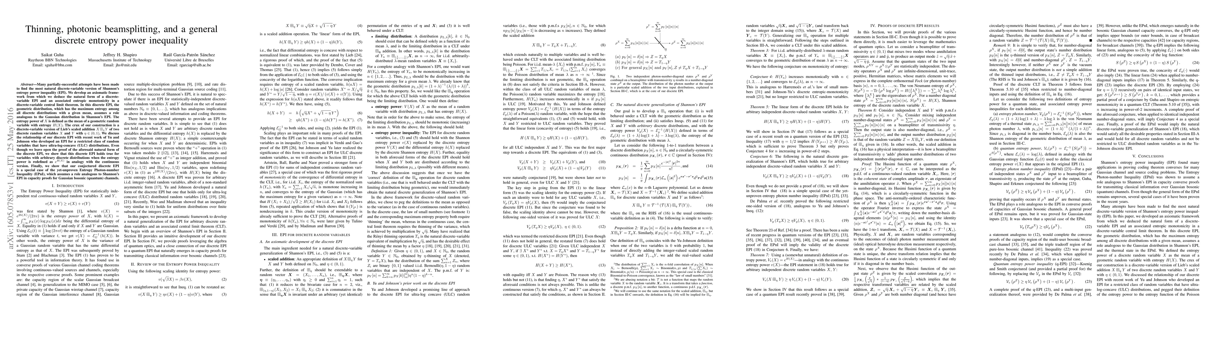 The paper introduces a discrete-variable EPI and an associated entropic monotonicity, along with a redefined entropy power for arbitrary discrete distributions.