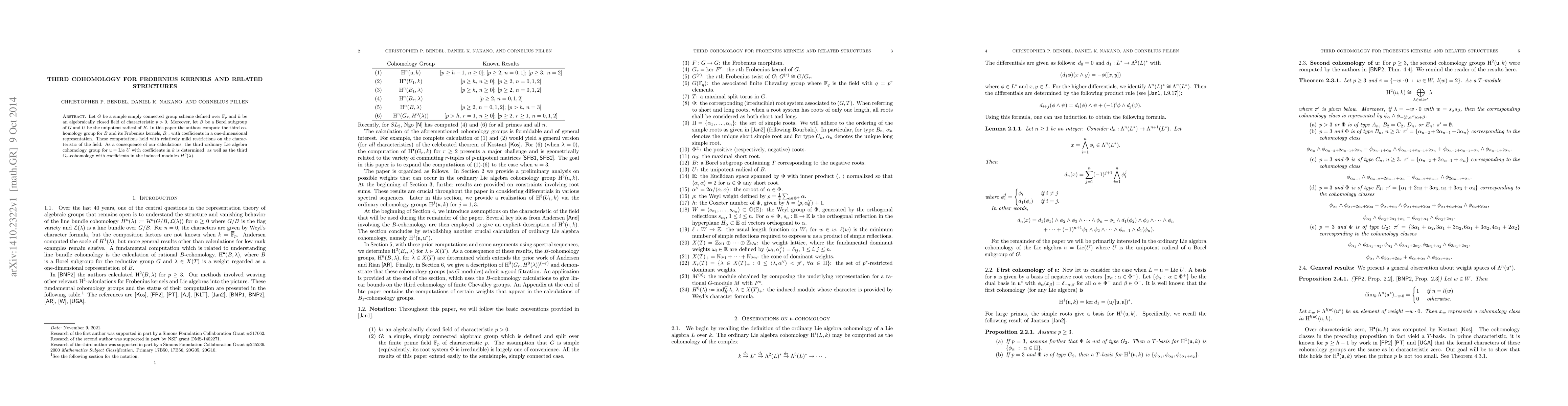Let $G$ be a simple simply connected group scheme defined over ${\mathbb F}_{p}$ and $k$ be an algebraically closed field of characteristic $p>0$. Moreover, let $B$ be a Borel subgroup of $G$ and $U$ be the unipotent radical of $B$. In this paper the authors compute the third cohomology group for $B$ and its Frobenius kernels, $B_{r}$, with coefficients in a one-dimensional representation. These computations hold with relatively mild restrictions on the characteristic of the field. As a consequence of our calculations, the third ordinary Lie algebra cohomology group for ${\mathfrak u}=\text{Lie }U$ with coefficients in $k$ is determined, as well as the third $G_{r}$-cohomology with coefficients in the induced modules $H^{0}(\lambda)$.
