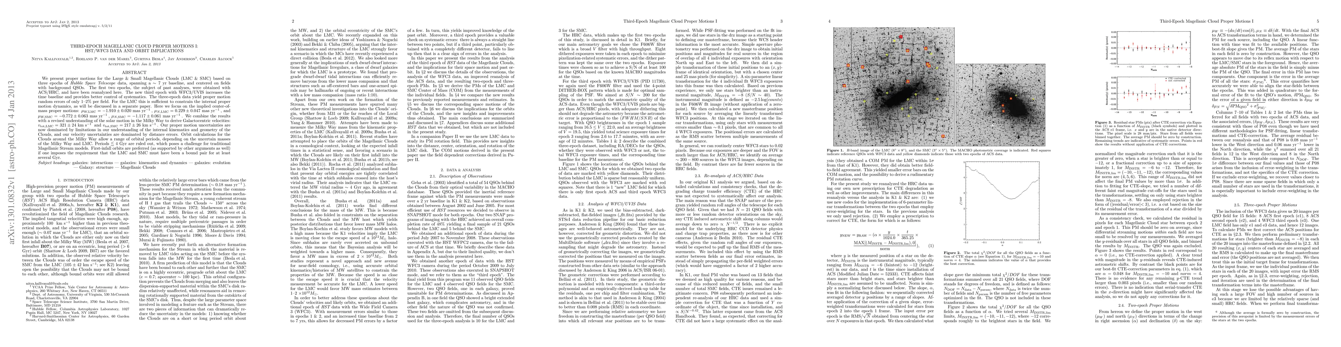 This paper reports precise proper motions for the Large and Small Magellanic Clouds (LMC & SMC) derived from three epochs of Hubble Space Telescope data, revealing significant constraints on their center-of-mass motions and Galactocentric velocities. The findings suggest first-infall orbits for the Clouds, challenging traditional models of the Magellanic Stream.