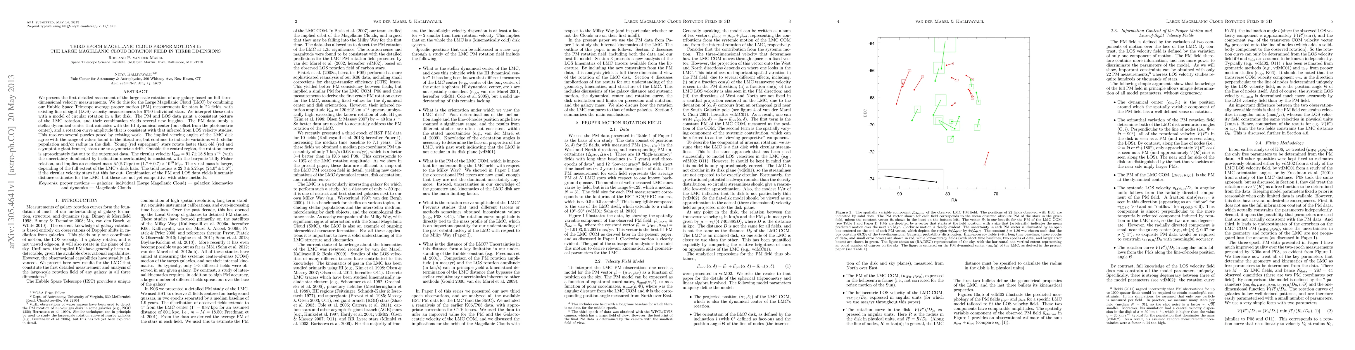 We present the first detailed assessment of the large-scale rotation of any galaxy based on full three-dimensional velocity measurements. We do this for the LMC by combining our HST average proper motion (PM) measurements for stars in 22 fields, with existing line-of-sight (LOS) velocity measurements for 6790 individual stars. We interpret these data with a model of circular rotation in a flat disk. The PM and LOS data paint a consistent picture of the LMC rotation and their combination yields several new insights. The PM data imply a stellar dynamical center that coincides with the HI dynamical center, and a rotation curve amplitude consistent with that inferred from LOS velocity studies. The implied disk viewing angles agree with the range of values found in the literature, but continue to indicate variations with stellar population and/or radius. Young (RSG) stars rotate faster than old (RGB/AGB) stars due to asymmetric drift. Outside the central region, the circular velocity is approximately flat at Vcirc = 91.7 +/- 18.8 km/s. This is consistent with the baryonic Tully-Fisher relation, and implies an enclosed mass M(8.7 kpc) = (1.7 +/- 0.7) x 10^10 solar masses. The virial mass is larger and depends on the full extent of the dark halo. The tidal radius is 22.3 +/- 5.2 kpc (24.0 +/- 5.6 degrees). Combination of the PM and LOS data yields kinematic distance estimates for the LMC, but these are not yet competitive with other methods.