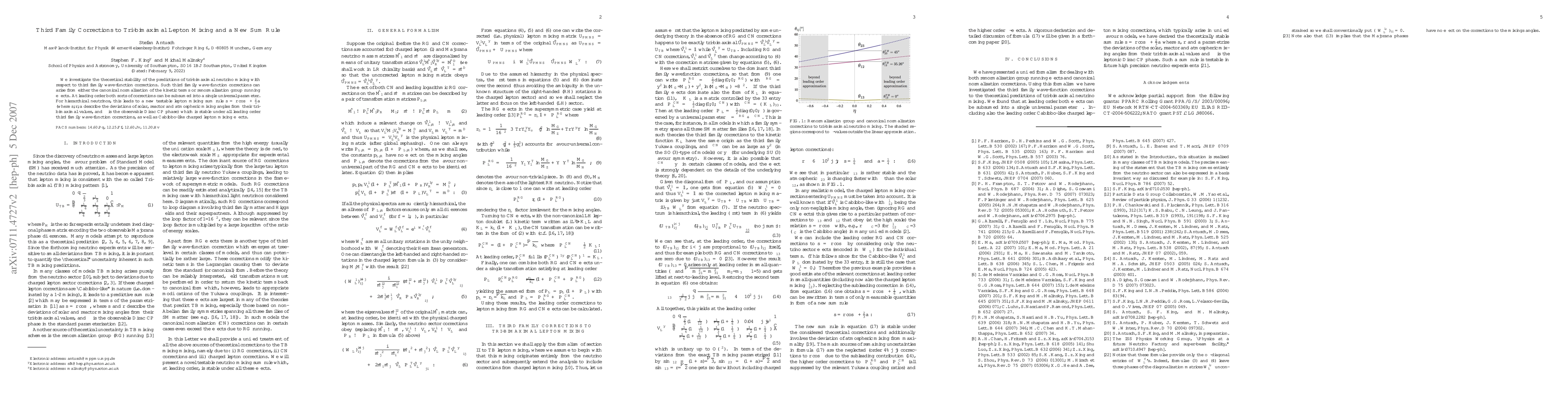 This paper examines the stability of tri-bimaximal neutrino mixing predictions under third family wave-function corrections, proposing a new sum rule 's = r cos delta + 2/3 a' that remains valid under these corrections and Cabibbo-like effects. The new sum rule provides a testable prediction for lepton mixing angles.
