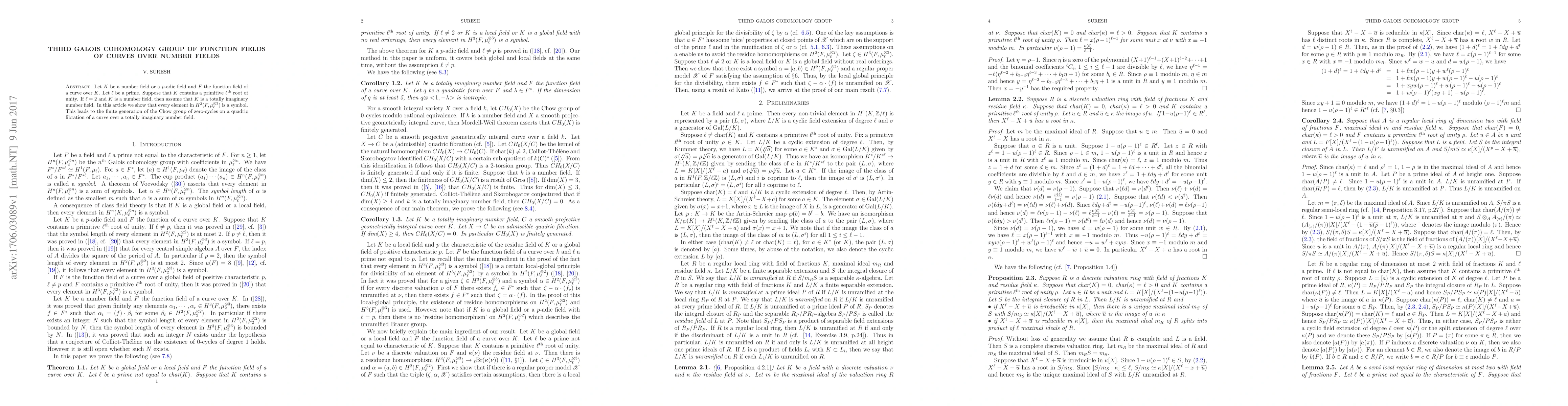 The paper shows that in function fields of curves over totally imaginary number fields, every element in the third Galois cohomology group with values in p-th roots of unity is a symbol if F contains a primitive p-th root of unity.