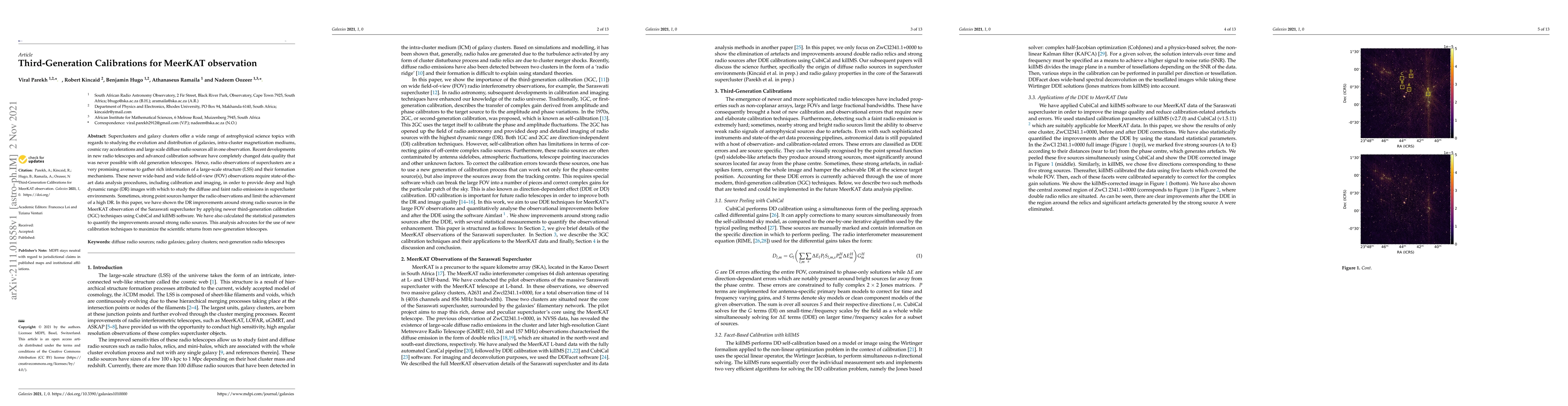 This paper demonstrates the application of third-generation calibration techniques to enhance data quality in MeerKAT observations of the Saraswati supercluster, achieving significant dynamic range improvements around strong radio sources. The use of CubiCal and killMS software highlights the potential of new calibration methods to maximize scientific returns from advanced radio telescopes.