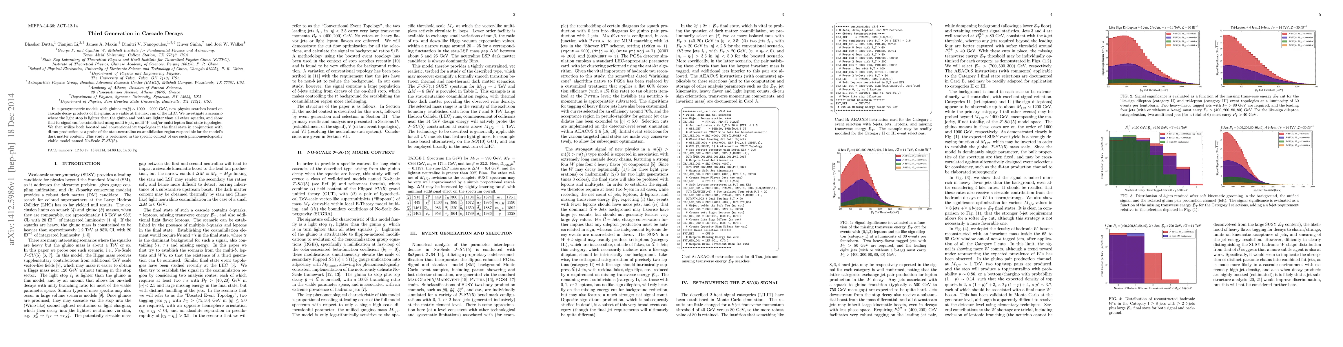 In supersymmetric models with gluinos around 1000-2000 GeV, new physics searches based on cascade decay products of the gluino are viable at the next run of the LHC. We investigate a scenario where the light stop is lighter than the gluino and both are lighter than all other squarks, and show that its signal can be established using multi b-jet, multi W and/or multi lepton final state topologies. We then utilize both boosted and conventional jet topologies in the final state in conjunction with di-tau production as a probe of the stau-neutralino co-annihilation region responsible for the model's dark matter content. This study is performed in the specific context of one such phenomenologically viable model named No-Scale F-SU(5).