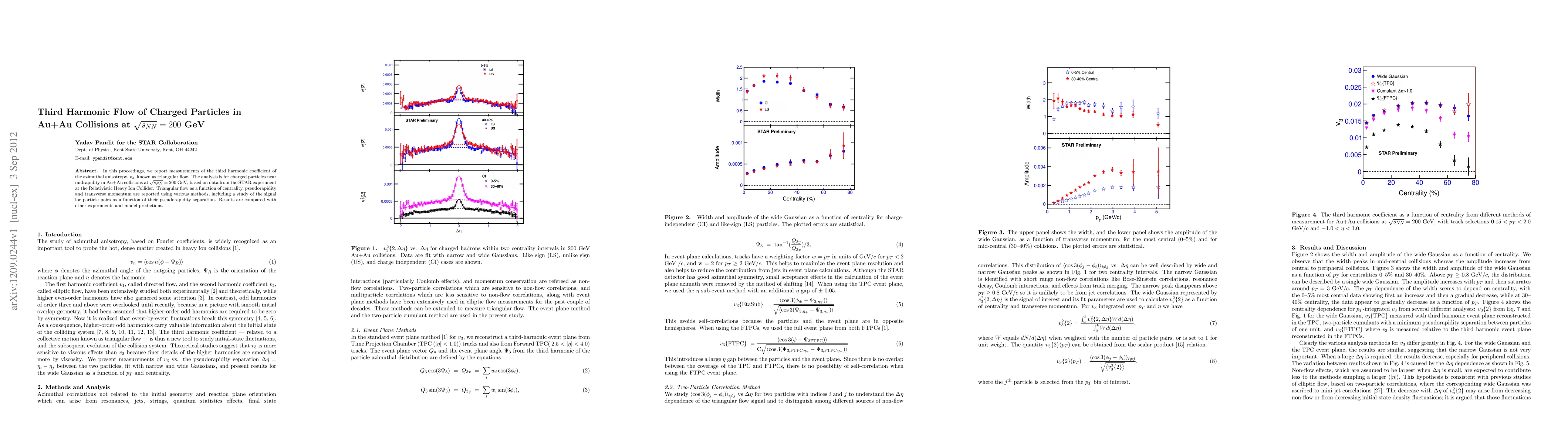 In this proceedings, we report measurements of the third harmonic coefficient of the azimuthal anisotropy, $v_{3}$, known as triangular flow. The analysis is for charged particles near midrapidity in Au+Au collisions at $\sqrt {s_{NN}} $ = 200 GeV, based on data from the STAR experiment at the Relativistic Heavy Ion Collider. Triangular flow as a function of centrality, pseudorapidity and transverse momentum are reported using various methods, including a study of the signal for particle pairs as a function of their pseudorapidity separation. Results are compared with other experiments and model predictions.
