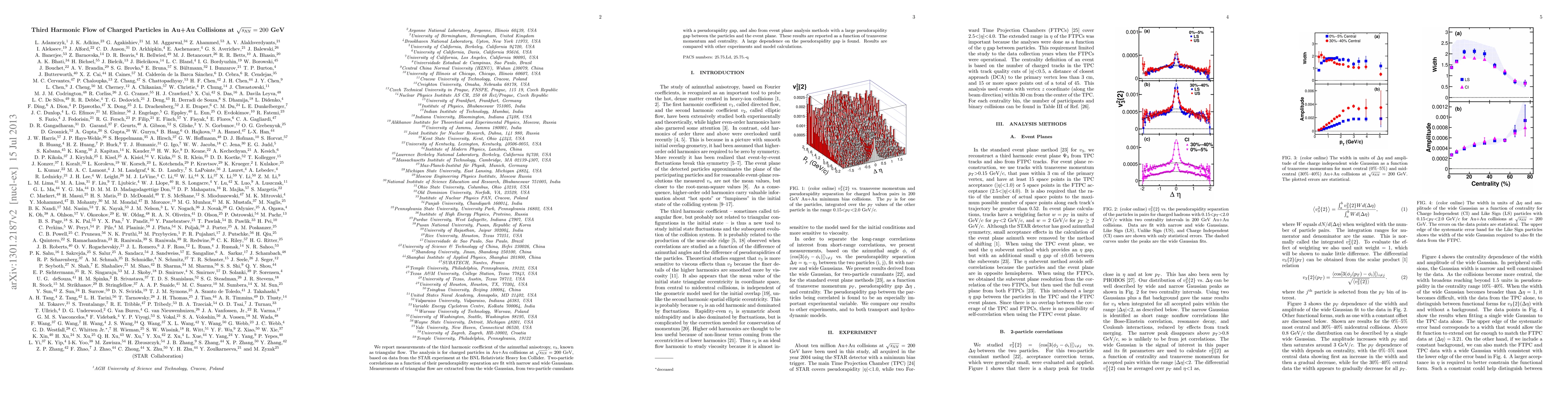 This paper reports measurements of the third harmonic coefficient v_3, or triangular flow, in Au+Au collisions at sqrtsNN = 200 GeV from the STAR experiment. The study finds significant dependence on pseudorapidity gap and compares results with other experiments and theoretical models.