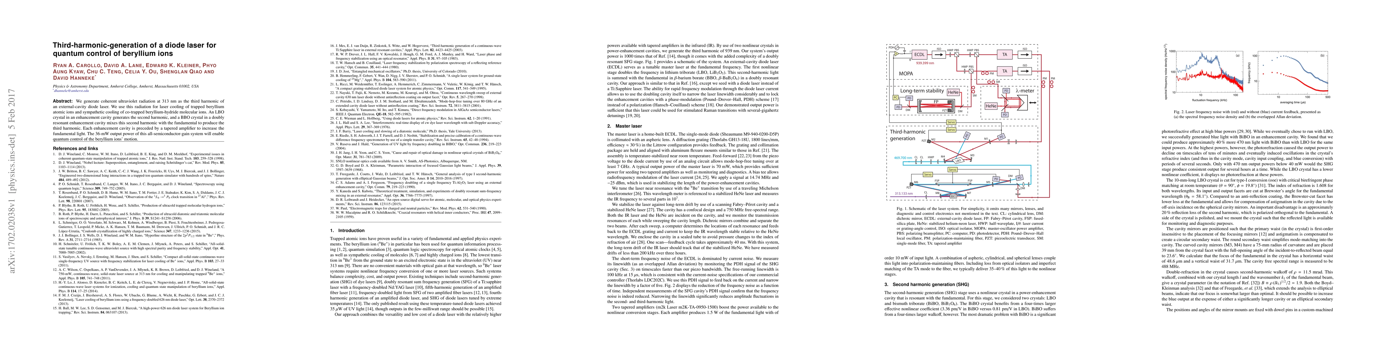 The paper details the generation of coherent ultraviolet radiation at 313 nm through third-harmonic generation of an external-cavity diode laser, which is then utilized for laser cooling of beryllium ions and sympathetic cooling of beryllium-hydride molecules. This process leverages enhancement cavities and semiconductor-based amplifiers to achieve 36 mW output power for quantum control applications.