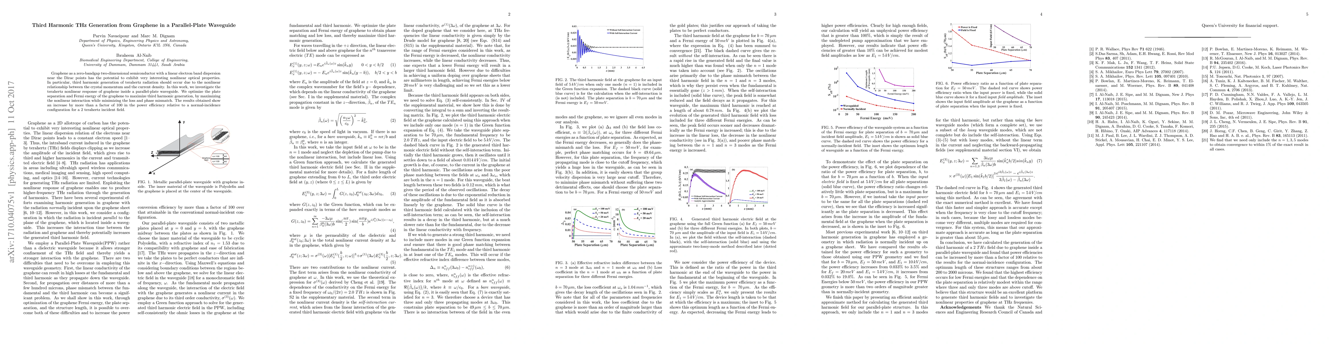 Graphene as a zero-bandgap two-dimensional semiconductor with a linear electron band dispersion near the Dirac points has the potential to exhibit very interesting nonlinear optical properties. In particular, third harmonic generation of terahertz radiation should occur due to the nonlinear relationship between the crystal momentum and the current density. In this work, we investigate the terahertz nonlinear response of graphene inside a parallel-plate waveguide. We optimize the plate separation and Fermi energy of the graphene to maximize third harmonic generation, by maximizing the nonlinear interaction while minimizing the loss and phase mismatch. The results obtained show an increase by more than a factor of 100 in the power efficiency relative to a normal-incidence configuration for a 2 terahertz incident field.