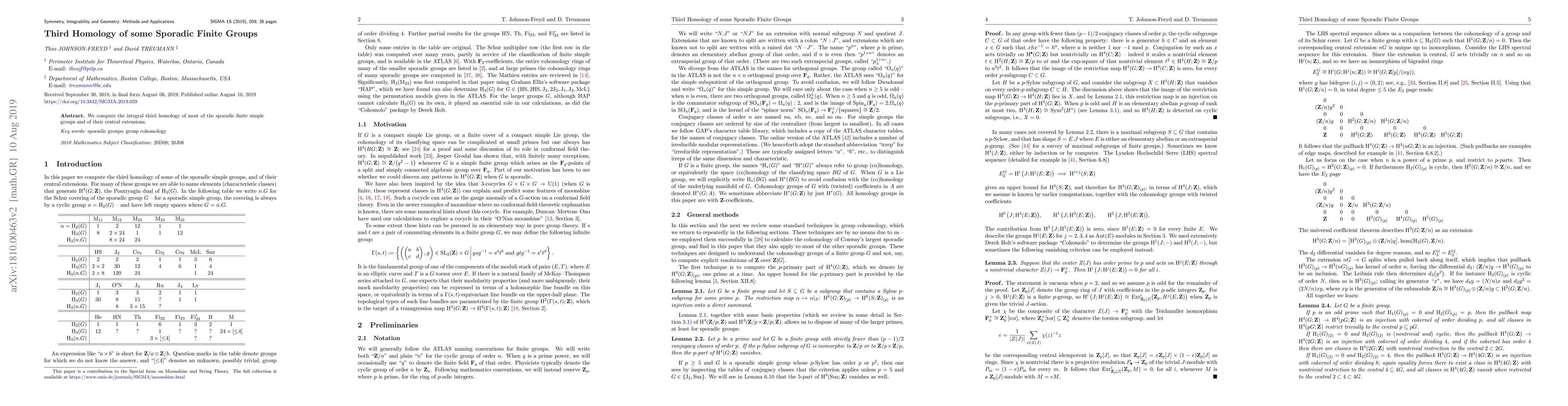 Summary: This paper calculates the integral third homology for the majority of sporadic finite simple groups and their central extensions, contributing to the understanding of their algebraic structures.