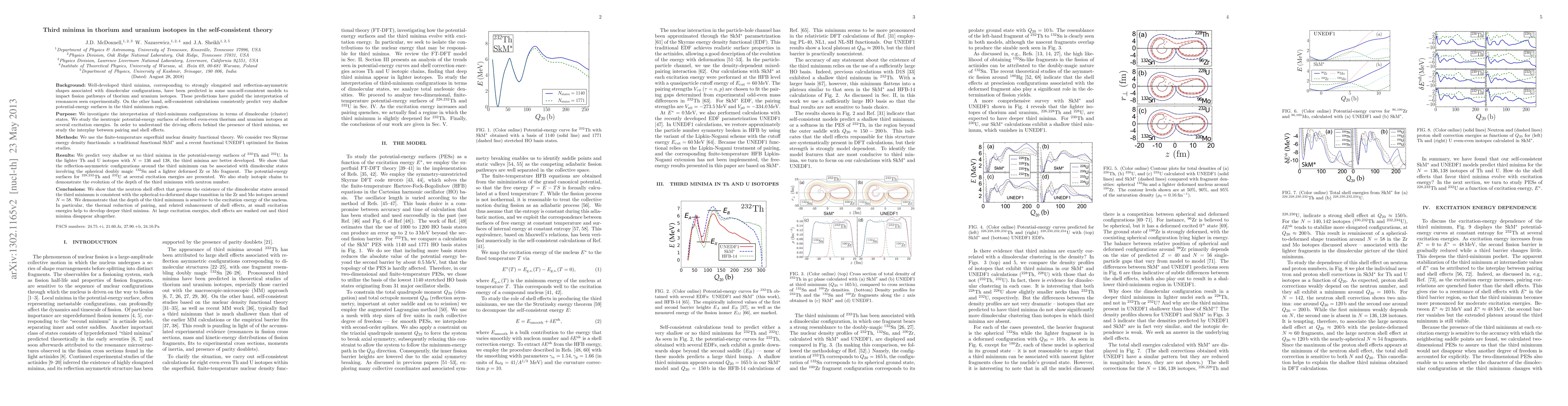 This paper investigates the presence of third minima in thorium and uranium isotopes using self-consistent nuclear density functional theory, revealing shallow or absent third minima. Deeper minima in certain isotopes are linked to dimolecular states involving 132Sn and deformed Zr or Mo fragments, driven by neutron shell effects and thermal reduction of pairing.