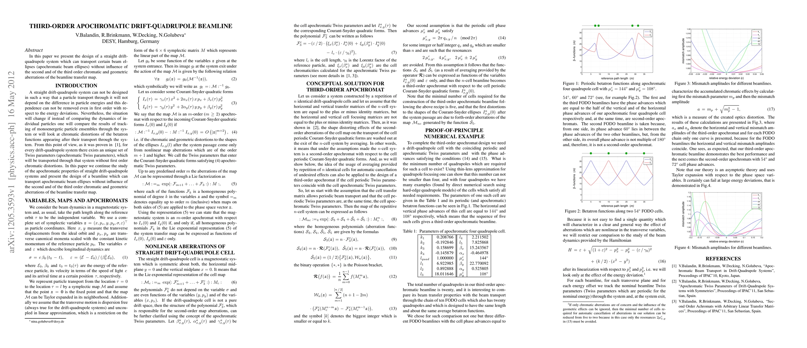 In this paper we present the design of a straight drift-quadrupole system which can transport certain beam ellipses (apochromatic beam ellipses) without influence of the second and of the third order chromatic and geometric aberrations of the beamline transfer map.