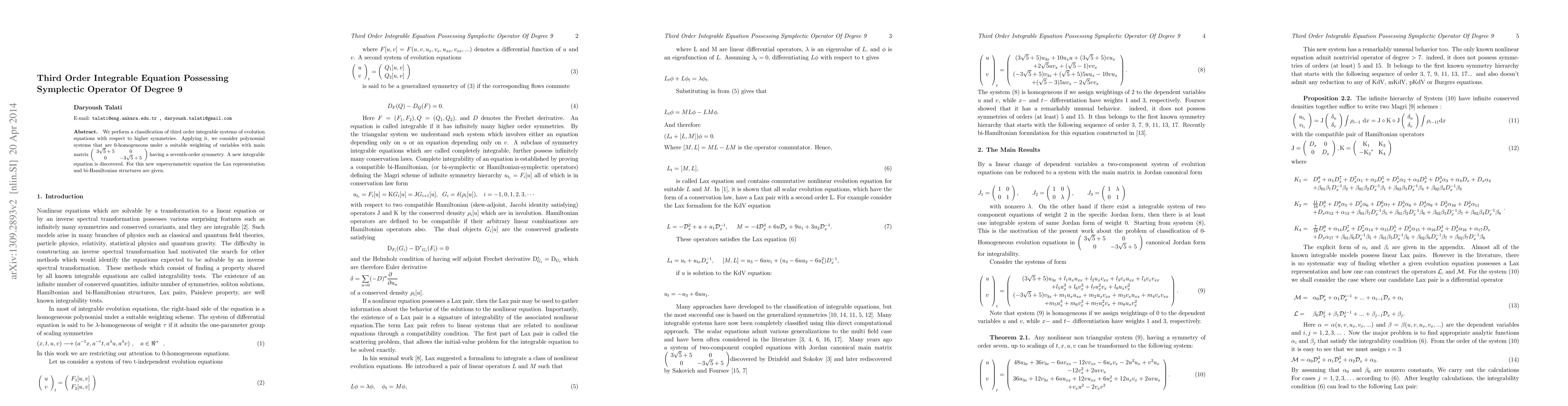 Researchers discovered a new third-order integrable equation with a 9th-degree symplectic operator, expanding our understanding of polynomial systems with higher symmetries.