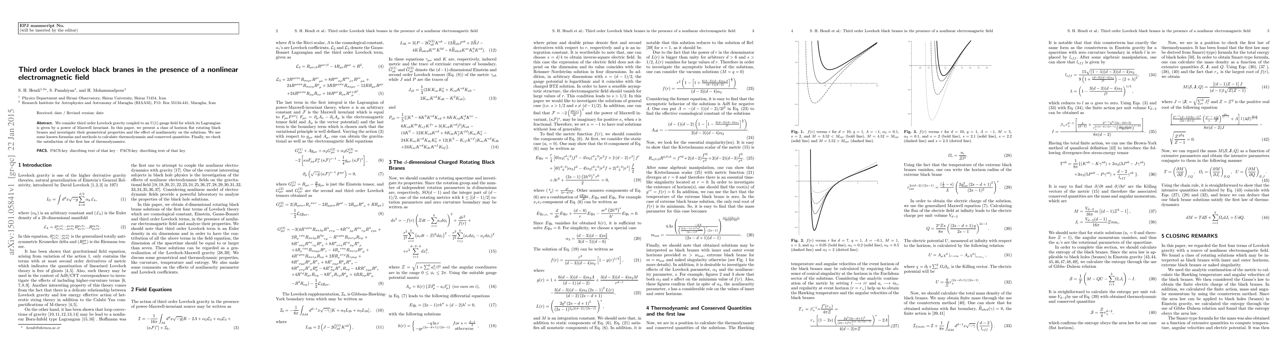 This research explores third order Lovelock black branes with a nonlinear electromagnetic field, presenting a class of horizon-flat rotating black brane solutions. The study investigates geometrical properties and the impact of nonlinearity, calculating thermodynamic quantities and verifying the first law of thermodynamics.