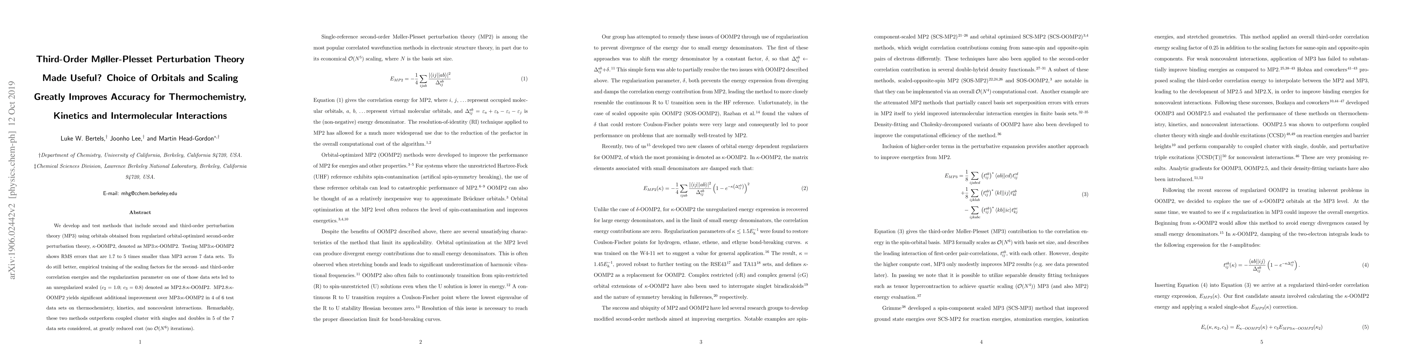 Researchers developed a new method that combines second-order perturbation theory with orbitals optimized through regularized orbital-optimized second-order perturbation theory, improving accuracy in thermochemistry, kinetics, and intermolecular interactions.