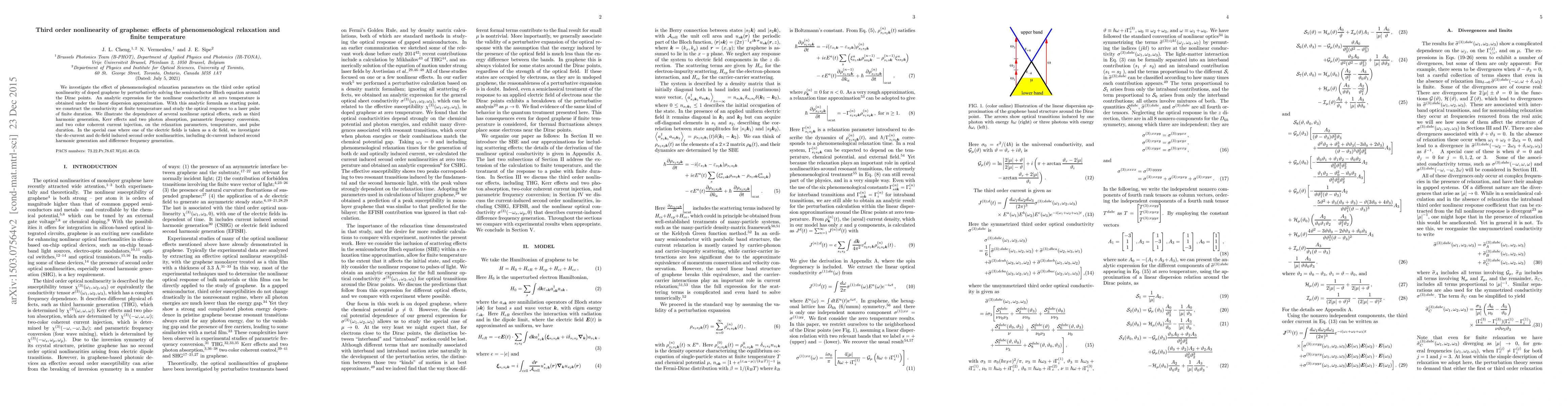 This study analyzes how phenomenological relaxation parameters and finite temperature influence the third-order optical nonlinearity in doped graphene. Using the semiconductor Bloch equation and an analytic expression for nonlinear conductivity, it explores various nonlinear optical effects like third harmonic generation and parametric frequency conversion.