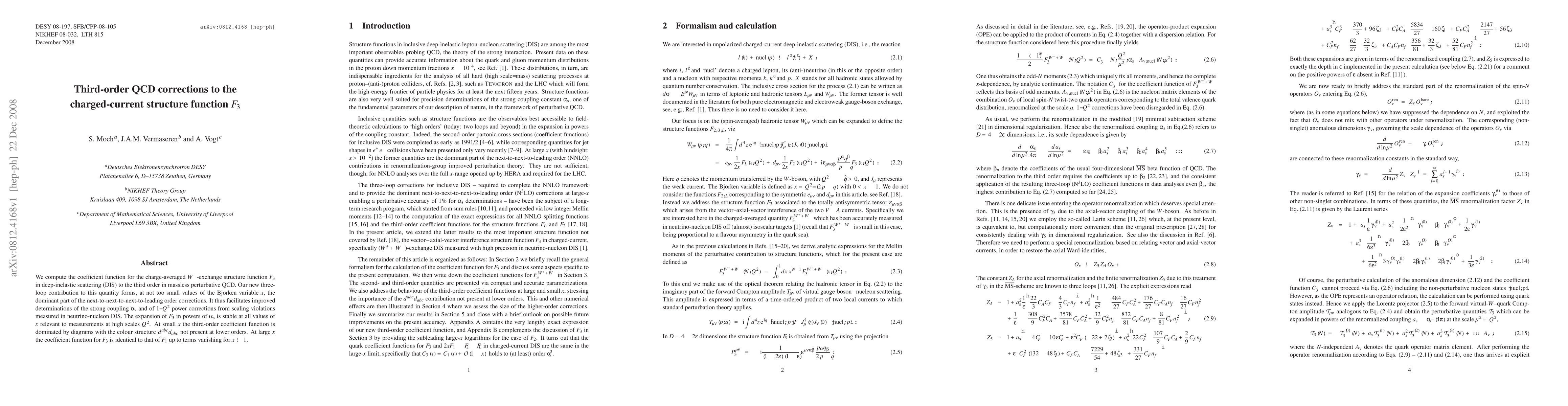 Researchers calculate third-order corrections to a structure function in deep-inelastic scattering, providing improved determinations of the strong coupling constant and power corrections from scaling violations.