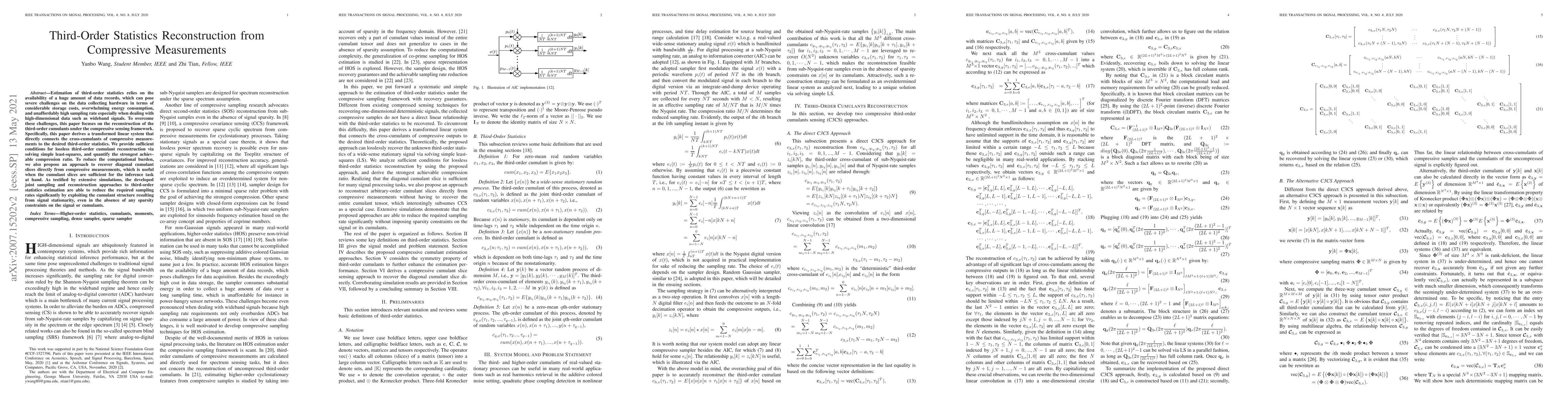 Researchers developed a method to reconstruct third-order statistics from compressive measurements, reducing sampling rates by up to 50% without sacrificing accuracy. The approach leverages the structure of cumulants to achieve lossless reconstruction with minimal computational burden.
