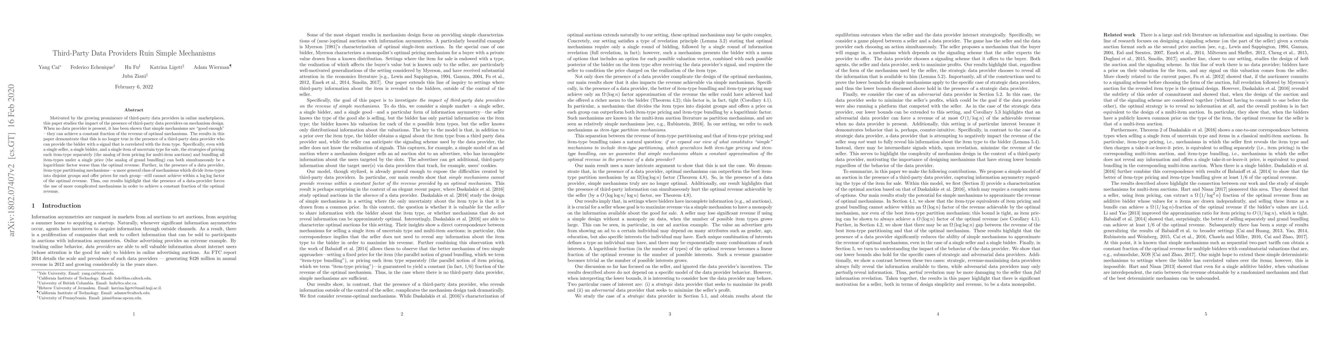 Motivated by the growing prominence of third-party data providers in online marketplaces, this paper studies the impact of the presence of third-party data providers on mechanism design. When no data provider is present, it has been shown that simple mechanisms are "good enough" -- they can achieve a constant fraction of the revenue of optimal mechanisms. The results in this paper demonstrate that this is no longer true in the presence of a third-party data provider who can provide the bidder with a signal that is correlated with the item type. Specifically, even with a single seller, a single bidder, and a single item of uncertain type for sale, the strategies of pricing each item-type separately (the analog of item pricing for multi-item auctions) and bundling all item-types under a single price (the analog of grand bundling) can both simultaneously be a logarithmic factor worse than the optimal revenue. Further, in the presence of a data provider, item-type partitioning mechanisms---a more general class of mechanisms which divide item-types into disjoint groups and offer prices for each group---still cannot achieve within a $\log \log$ factor of the optimal revenue. Thus, our results highlight that the presence of a data-provider forces the use of more complicated mechanisms in order to achieve a constant fraction of the optimal revenue.