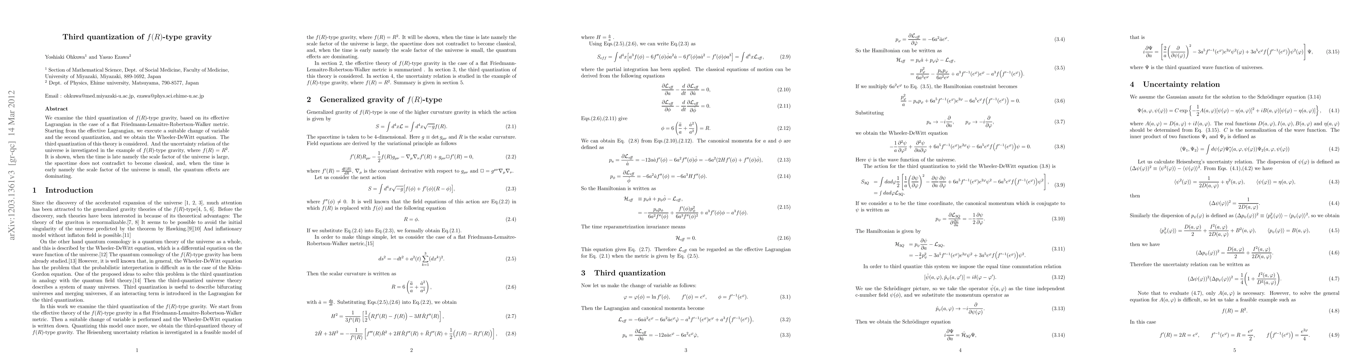 This paper explores the third quantization of $f(R)$-type gravity using an effective Lagrangian with a flat Friedmann-Lemaître-Robertson-Walker metric, deriving the Wheeler-DeWitt equation, and investigates the uncertainty relation, revealing that quantum effects dominate early in the universe while classical spacetime emerges later.
