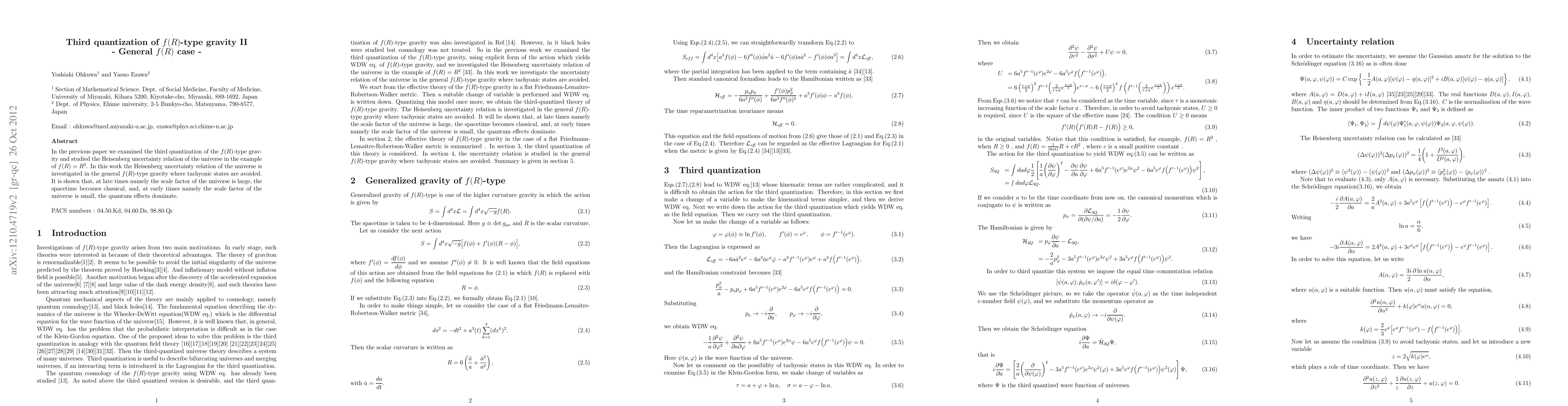 In the previous paper we examined the third quantization of the $f(R)$-type gravity and studied the Heisenberg uncertainty relation of the universe in the example of $f(R)=R^2$. In this work the Heisenberg uncertainty relation of the universe is investigated in the general $f(R)$-type gravity where tachyonic states are avoided. It is shown that, at late times namely the scale factor of the universe is large, the spacetime becomes classical, and, at early times namely the scale factor of the universe is small, the quantum effects dominate.