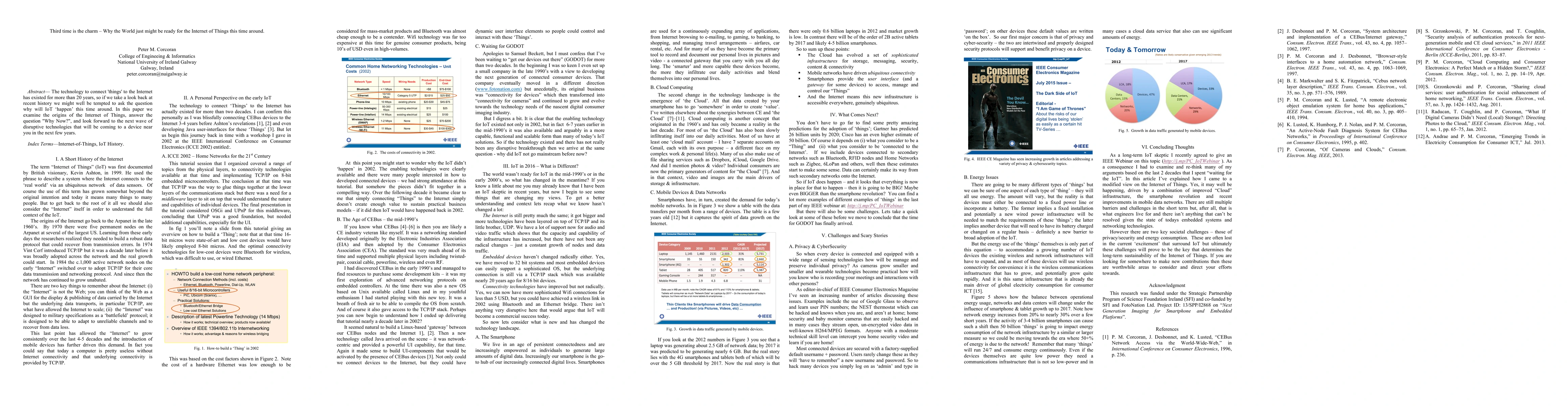 The technology to connect 'things' to the Internet has existed for more than 20 years, so if we take a look back at recent history we might well be tempted to ask the question why will IoT 'happen' this time around. In this paper we examine the origins of the Internet of Things, answer the question "Why Now?", and look forward to the next wave of disruptive technologies that will be coming to a device near you in the next few years.