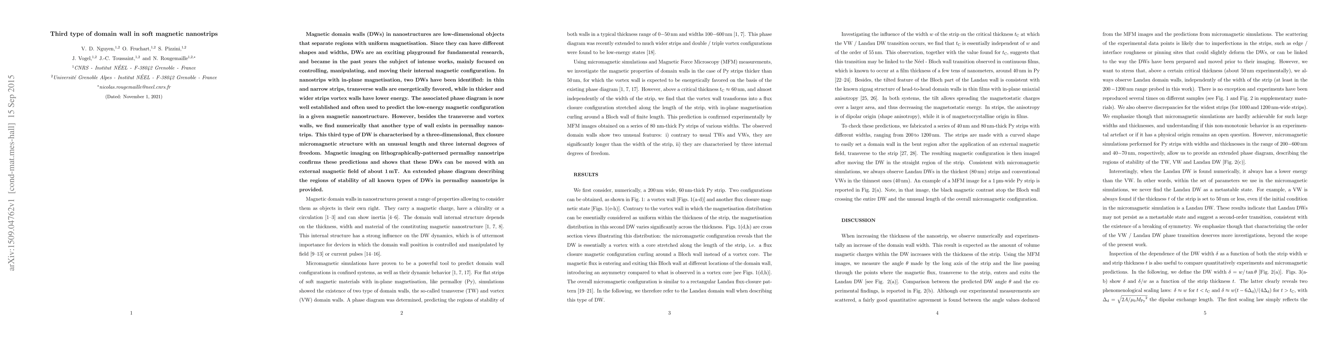 This research identifies a third type of magnetic domain wall in soft magnetic nanostrips, characterized by a unique three-dimensional flux closure structure. Numerical simulations and magnetic imaging confirm its existence and movement capability with an external magnetic field, expanding the known phase diagram of domain wall types in permalloy nanostrips.