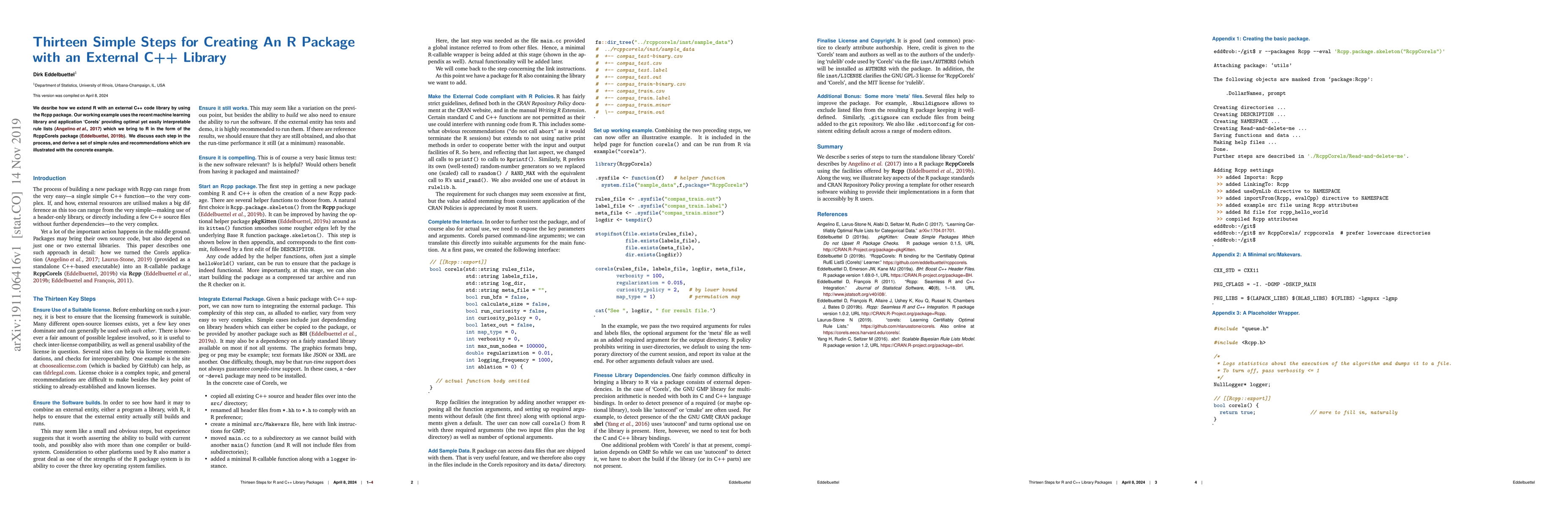 This paper outlines a methodical approach to integrating an external C++ machine learning library, 'Corels', into R through the Rcpp package, resulting in the 'RcppCorels' package. It provides thirteen straightforward steps and recommendations for creating R packages that utilize external C++ libraries.
