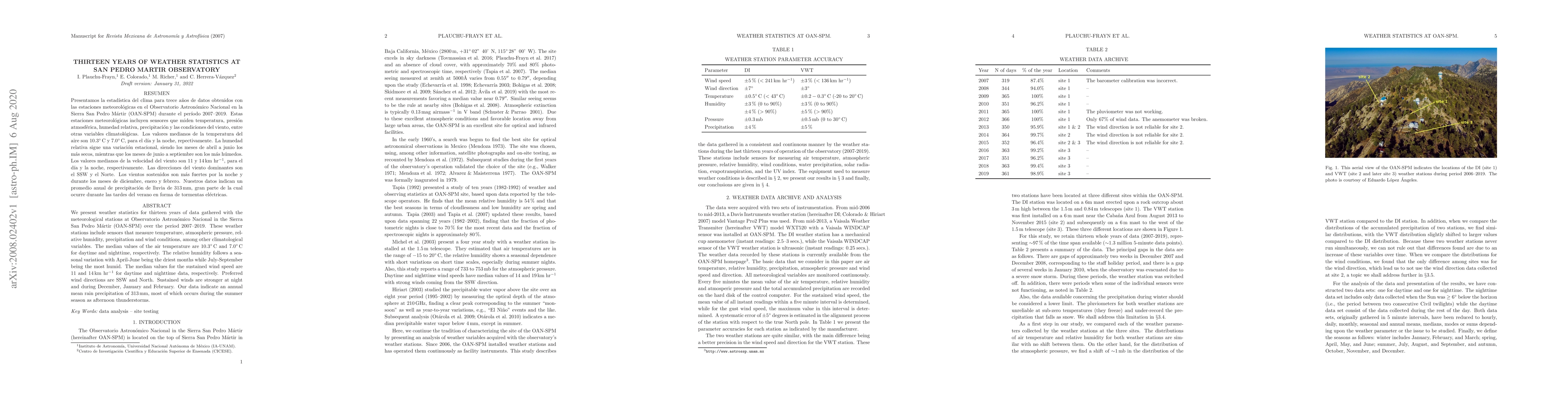 This paper summarizes thirteen years of weather data from San Pedro Martir Observatory, showing median daytime and nighttime temperatures of $10.3^{\circ}$ C and $7.0^{\circ}$ C, respectively, with stronger winds and higher humidity at night. Annual mean precipitation is 313 mm, primarily in summer thunderstorms.