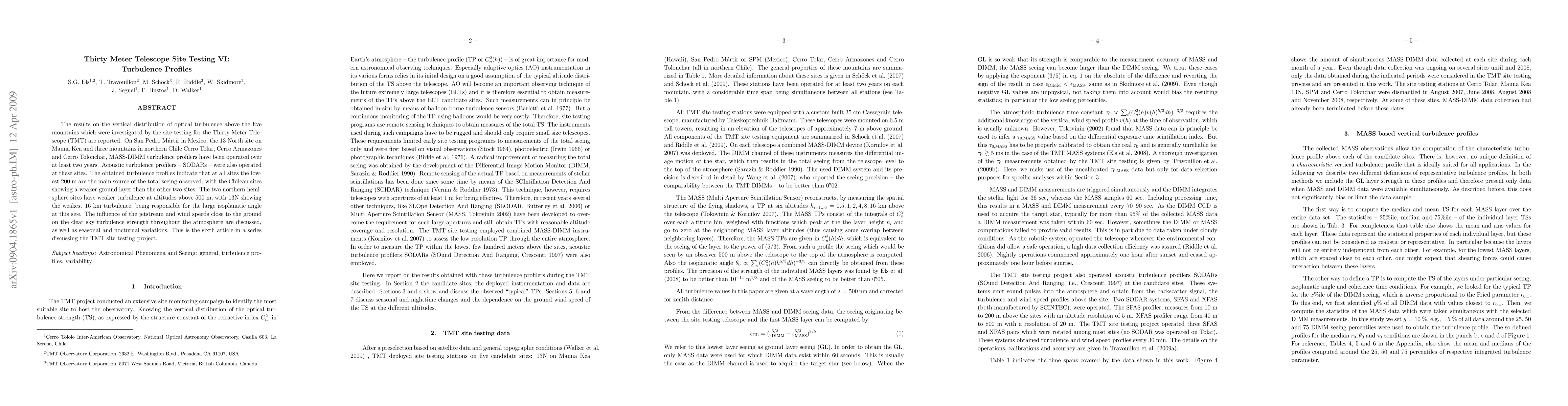 This paper reports on the vertical distribution of optical turbulence at five mountain sites tested for the Thirty Meter Telescope, revealing that the lowest 200m are the main source of total seeing, with the Chilean sites having a weaker ground layer. The northern hemisphere sites show weaker turbulence above 500m, particularly 13N, which has the lowest turbulence and a large isoplanatic angle.