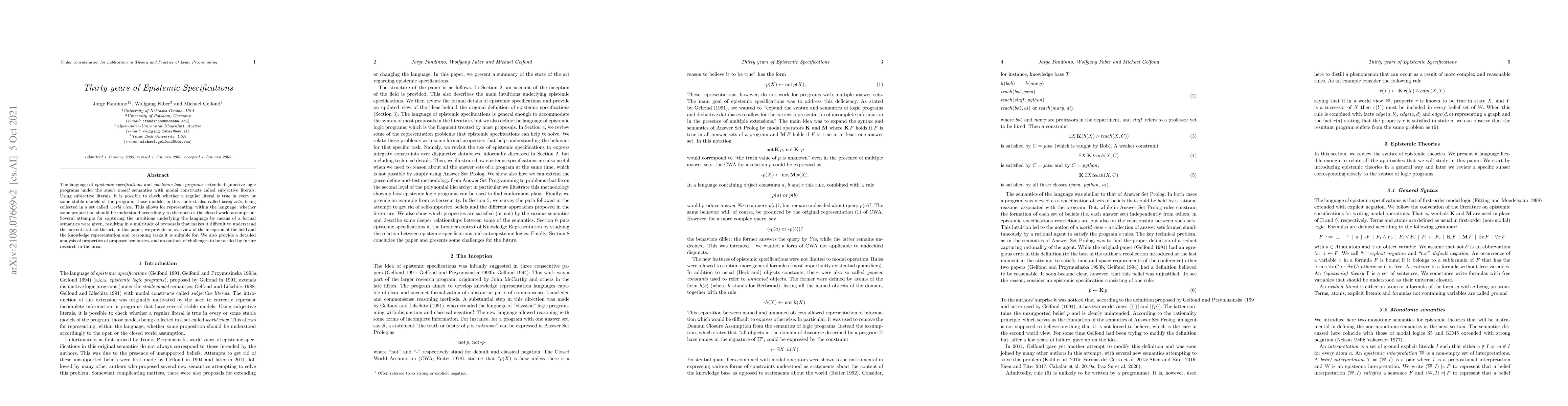This paper reviews the development and current state of epistemic specifications, detailing their use in epistemic logic programs and the challenges in understanding various proposed semantics. It highlights the representation of open and closed world assumptions and outlines future research directions.