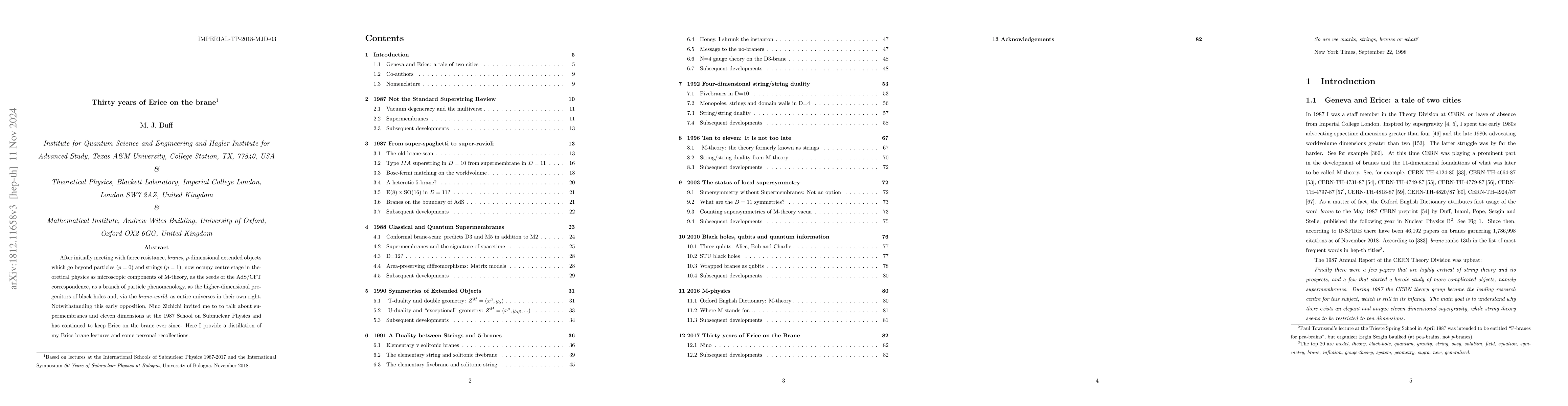 After initially meeting with fierce resistance, "branes", p-dimensional extended objects which go beyond particles (p=0) and strings (p=1), now occupy centre stage in theoretical physics as microscopic components of M-theory, as the seeds of the AdS/CFT correspondence, as a branch of particle phenomenology, as the higher-dimensional progenitors of black holes and, via the "brane-world", as entire universes in their own right. Notwithstanding this early opposition, Nino Zichichi invited me to to talk about supermembranes and eleven dimensions at the 1987 School on Subnuclear Physics and has continued to keep Erice on the brane ever since. Here I provide a distillation of my Erice brane lectures and some personal recollections.