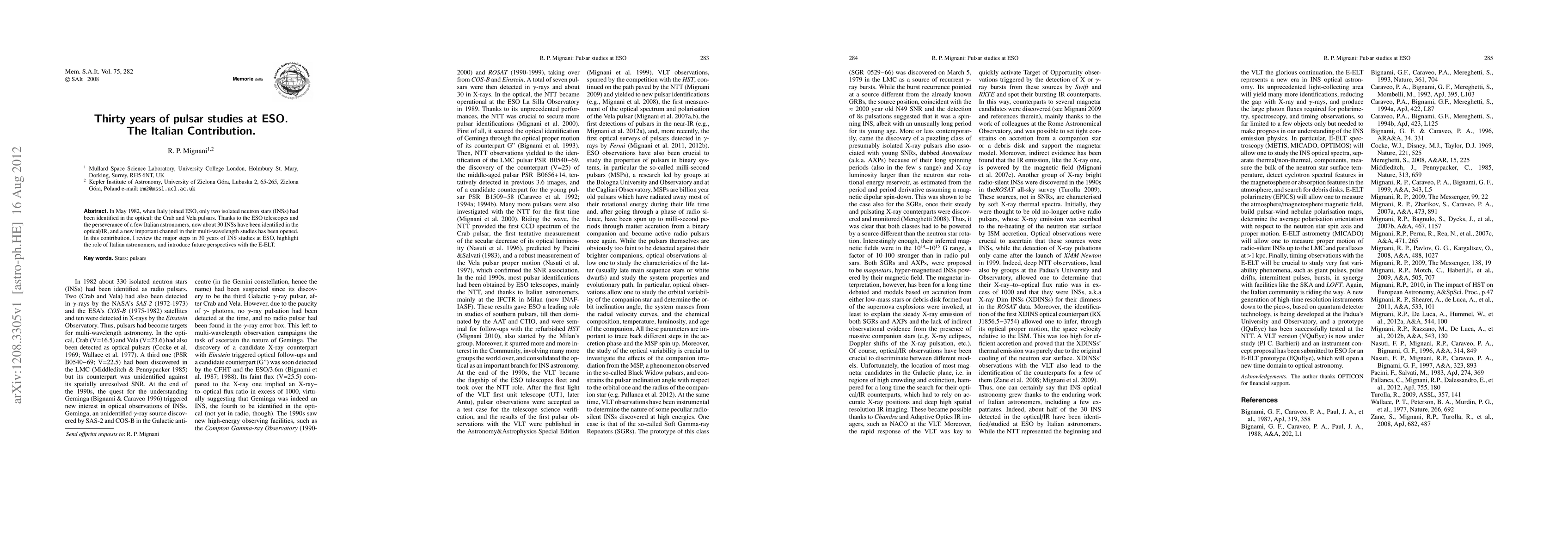 In May 1982, when Italy joined ESO, only two isolated neutron stars (INSs) had been identified in the optical: the Crab and Vela pulsars. Thanks to the ESO telescopes and the perseverance of a few Italian astronomers, now about 30 INSs have been identified in the optical/IR, and a new important channel in their multi-wavelength studies has been opened. In this contribution, I review the major steps in 30 years of INS studies at ESO, highlight the role of Italian astronomers, and introduce future perspectives with the E-ELT.