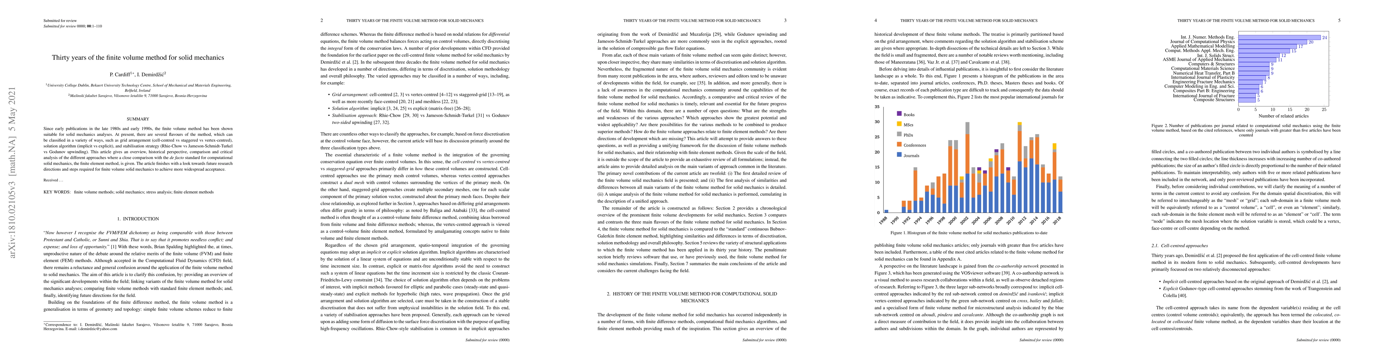 Since early publications in the late 1980s and early 1990s, the finite volume method has been shown suitable for solid mechanics analyses. At present, there are several flavours of the method, which can be classified in a variety of ways, such as grid arrangement (cell-centred vs staggered vs vertex-centred), solution algorithm (implicit vs explicit), and stabilisation strategy (Rhie-Chow vs Jameson-Schmidt-Turkel vs Godunov upwinding). This article gives an overview, historical perspective, comparison and critical analysis of the different approaches where a close comparison with the de facto standard for computational solid mechanics, the finite element method, is given. The article finishes with a look towards future research directions and steps required for finite volume solid mechanics to achieve more widespread acceptance.
