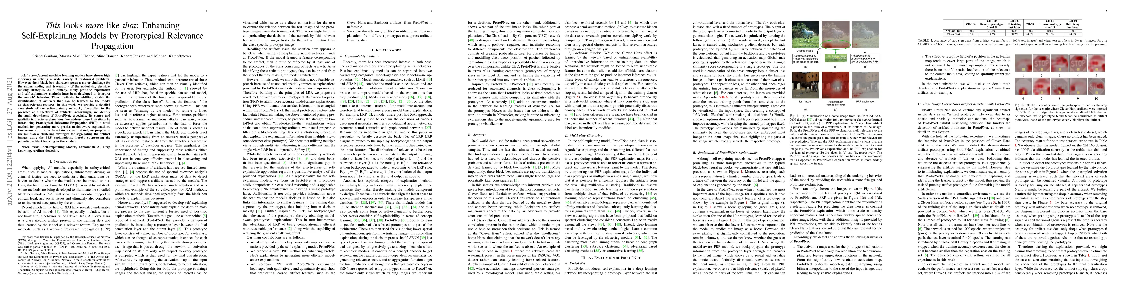 This paper introduces Prototypical Relevance Propagation (PRP) to enhance self-explaining models like ProtoPNet, addressing their coarse and imprecise explanations. It also proposes multi-view clustering to mitigate artifact learning in models.