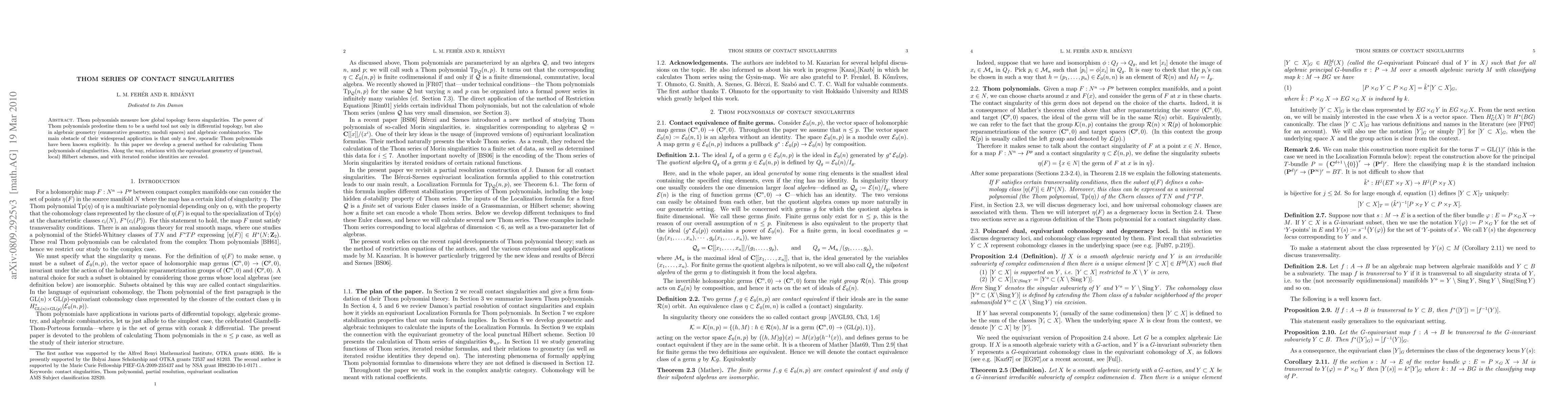 The research used a combination of mathematical techniques and computational methods to analyze the Thom series of contact classes.
